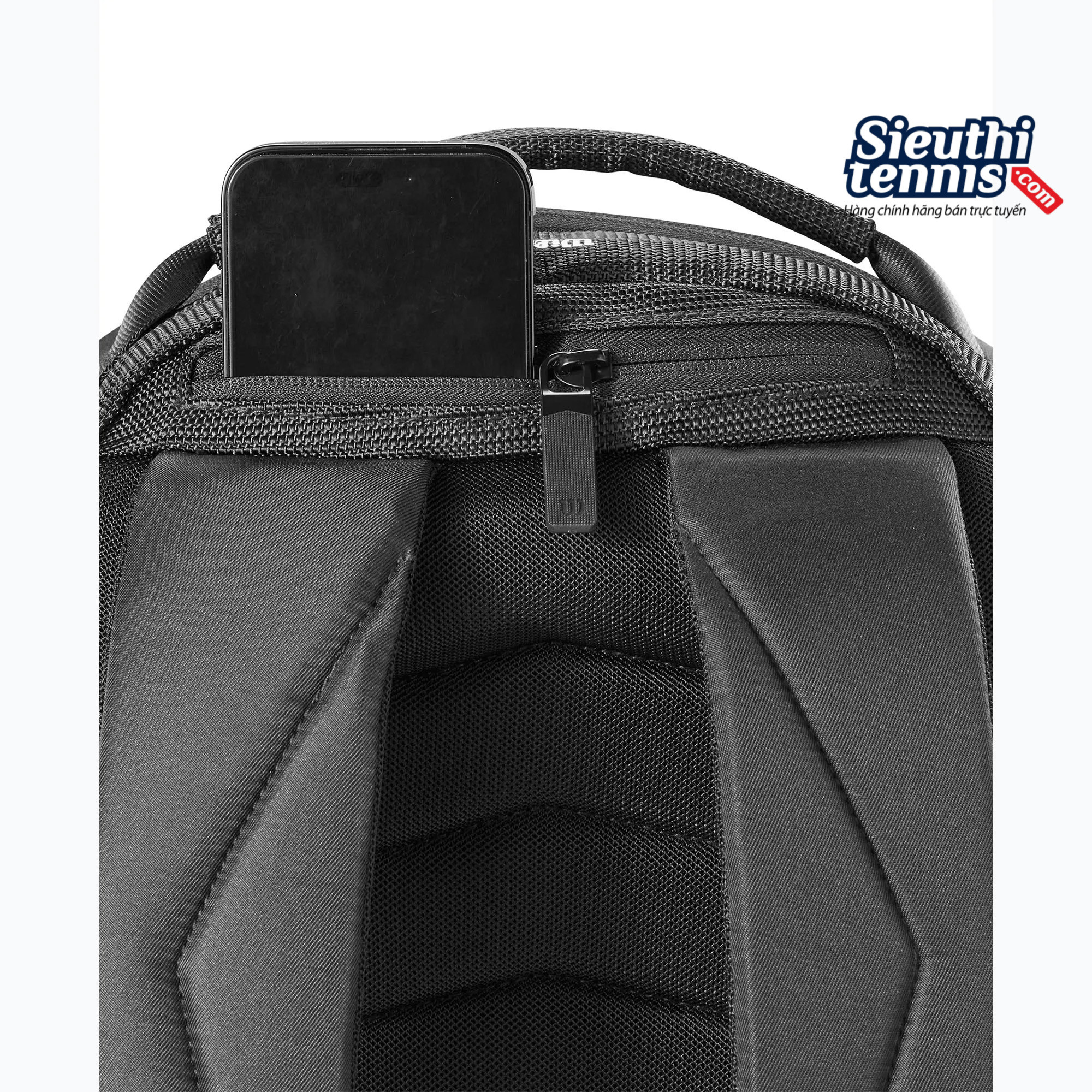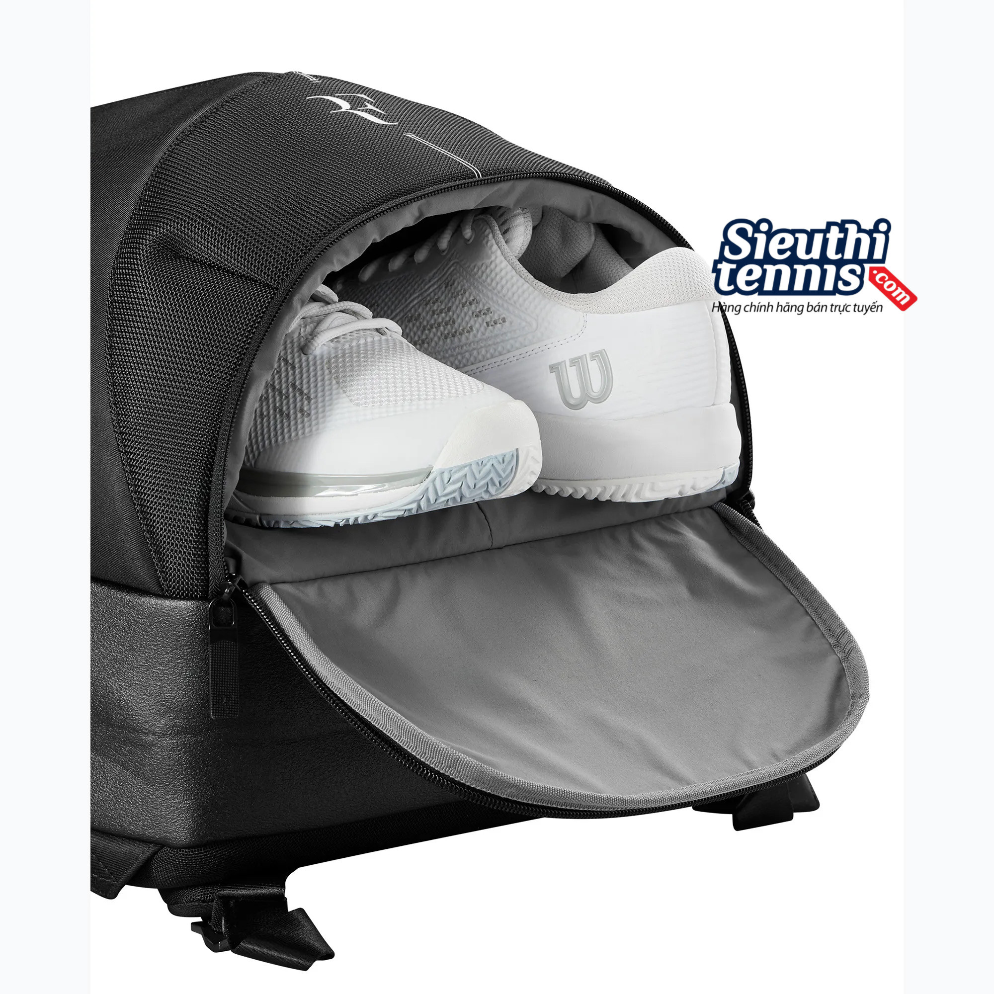 Ngăn chứa có khóa kéo để đựng đầu vợt.